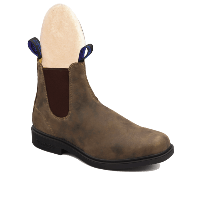 Blundstone 1391 الفستان الحراري الشتوي باللون البني الريفي. قمنا بتجهيز هذا الحذاء لفصل الشتاء لراحة تامة في أبرد الشهور. وسادة قدم من الصوف بنسبة 100٪ ، وبطانة رقيقة ، ومقاومة للماء بنسبة 100٪ - حتى الأشرطة المطاطية! يساعد ارتفاع حذاء تشيلسي في الحفاظ على جفاف القدمين. أحضر السلاش!