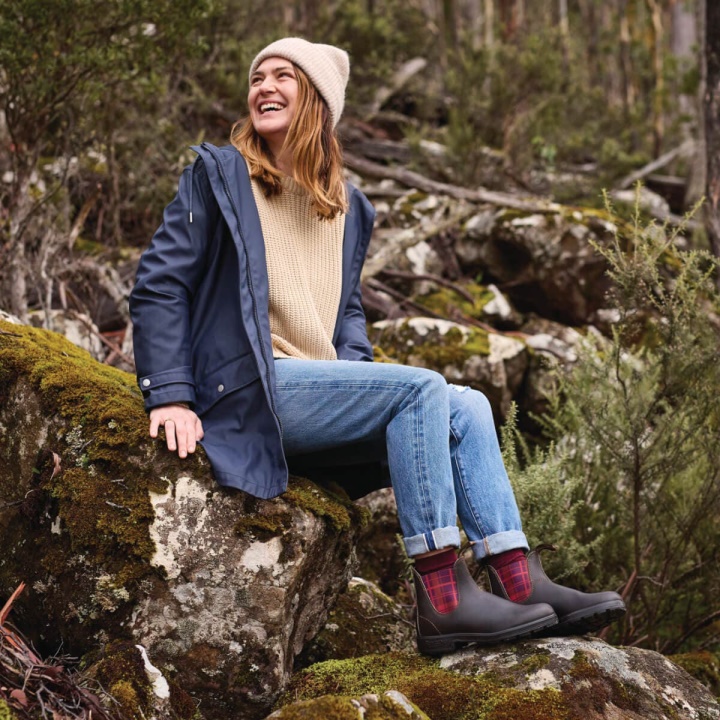 مزيج خالٍ من التصميم الأيقوني ذي اللون البني الداكن وطباعة الترتان باللون العنابي في هذا الحذاء المريح والمتين للغاية.